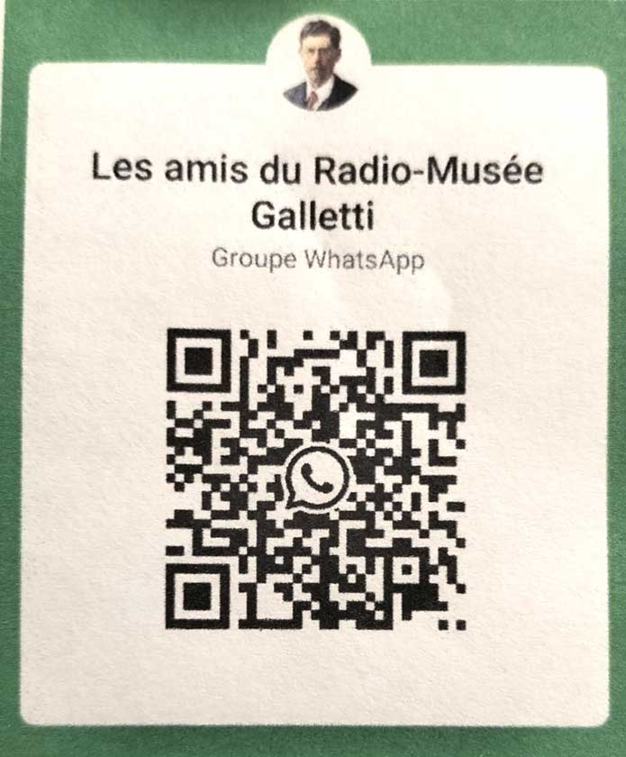 Nous remercions tous nos visiteurs d'être venus partager un moment en notre compagnie et tous nos bénévoles pour leur implication dans l'organisation de nos évènements. Nous restons en contact via nos réseaux sociaux, Facebook et le groupe Whatsapp, "Les amis du Radio-Musée Galletti", que vous pouvez rejoindre en scannant le QR code en photo sous cet article. Passez d'excellentes fêtes de fin d'année, à très bientôt, l'équipe du Radio-Musée Galletti !
